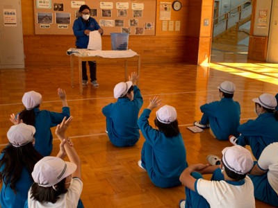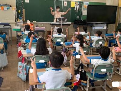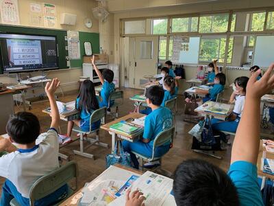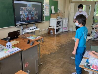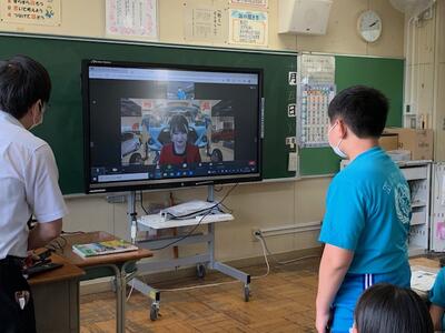 見終わった後は、内容についてのクイズです。担当の方がオンラインで問題を出し、児童が答え、解答が示されるという流れです。最後は質問コーナーです。子どもたちの質問に一つ一つ丁寧に答えていただきました。リアルタイムで進行するのは子どもたちにとっても新鮮だったようです。一時間を通して真剣に、しかも楽しく学習することができました!