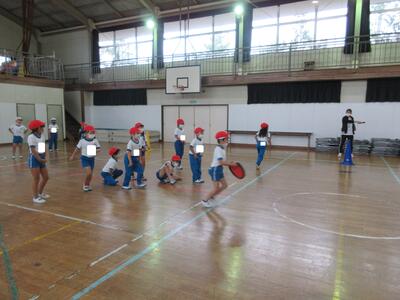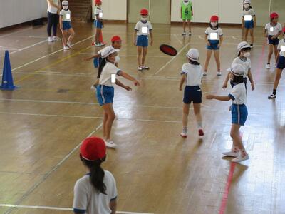 2年生はリレー遊び、ドッジビーで交流を深めました。