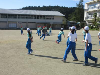 6年生は上遠野小考案の「ピーターパンは誰だ(変形おにごっこ)」、入遠野小考案の「じゃんけんで4つの関所を突き破れ」を行いました。自分たちで考えた楽しいゲームでした!