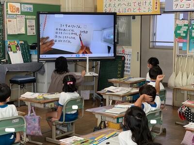 今日は1年生の研究授業がありました。教科・単元は算数「たしざん」です。
