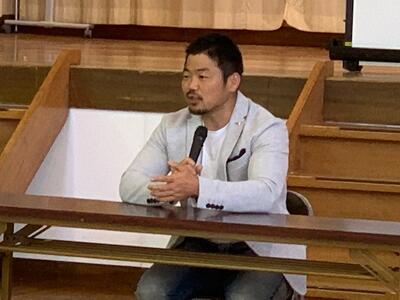オリンピック・パラリンピック推進教育の一環として、今日はラグビーの田中史朗選手(W杯3回連続出場)に来ていただきました。
