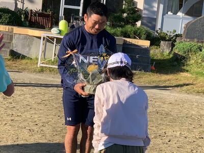 田中選手、シーズン前のお忙しい時期にご来校いただき、本当にありがとうございました!益々のご活躍をお祈りしております。