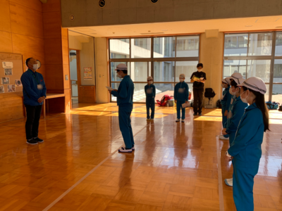 出会いのつどいとオリエンテーションの様子です。出会いのつどいでは学校の様子を紹介しました。オリエンテーションではベッドメイク他生活全般についてのお話を聞きました。