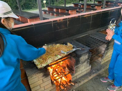今日の夕食は焼きそばです。包丁を持つ手が少し自信なさげですが、みんなで協力して頑張りました❗️