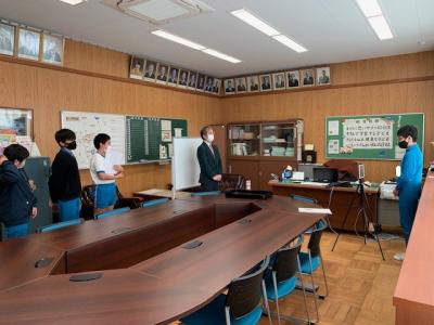 今日の全校集会も校長室からリモートで全学級に配信しました。内容は賞状の伝達がメインです。