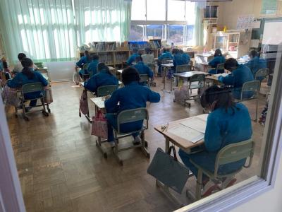 今日は授業参観と地区懇談会が行われました。密集空間をつくらないため、2校時と3校時の2つの時間で地区ごとに分散して実施しました。