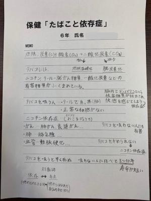終了後には「大人になってもタバコを吸わないようにします」「親戚で吸っている人に注意してみたいです」といった感想をたくさん聞くことができました。