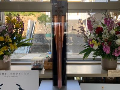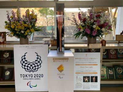 今日から26日(金)まで東京パラリンピックの聖火リレーに使われるトーチを職員玄関に展示しています。本物です!