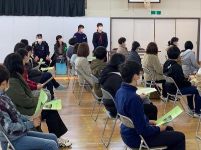 最後にいわき南署生活安全課の職員の方からSNSに関する簡単な諸注意、駐在さんからシートベルトを締めることの重要性などについてお話をいただきました。