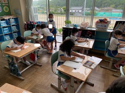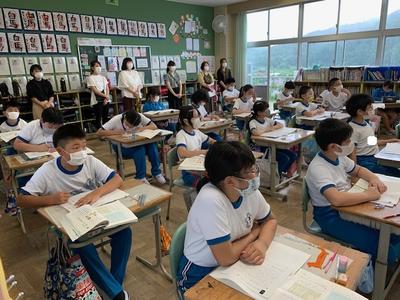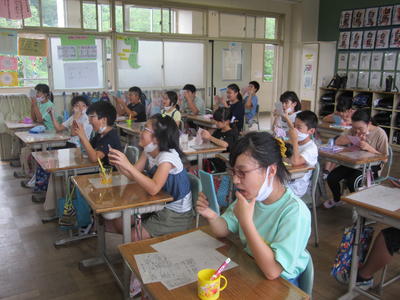 校長先生からの話のあとには、2年・4年・6年代表児童が「一学期の反省と夏休みの計画」について作文を発表しました。全校生も、集中して放送を聞くことができていました。