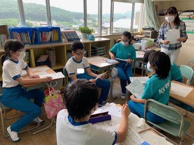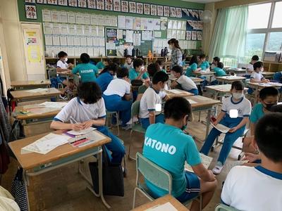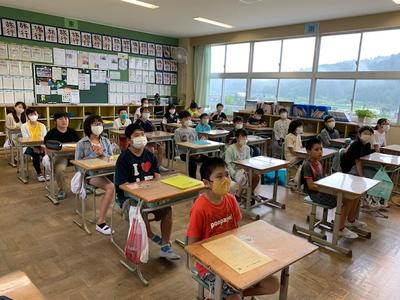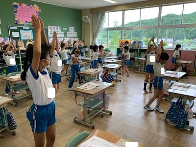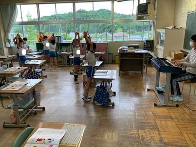 コロナウイルスの感染防止のため、休業明けしばらくは、音楽の授業においては「歌なし」「鍵盤ハーモニカ・リコーダーの演奏なし」で、もっぱらリズム打ちや鑑賞等が中心となっていましたが、『飛沫等が飛散しないように最大限の注意を払って、ある程度の活動を進めても構わない』と活動の見直しが図られました。
