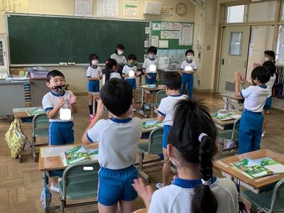 その後は、1年生・3年生・5年生の代表児童が「夏休みの思い出と2学期にがんばりたいこと」を発表しました。3人ともしっかりとした作文をはっきりとした声で発表できました。全校生の拍手を直接聞くことはできませんでしたが、3人の代表児童の心には、みんなの拍手が届いたことでしょうね。