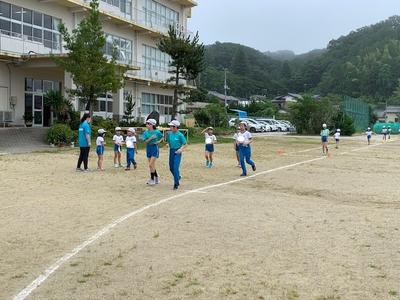 この活動もスポーツ委員会の6年生が中心となって全校生に呼びかけました。家にいる時間が長かったのでみんなの体力が落ちている、また、コロナウイルスに負けない健康な体を作ろう、という2つの願いが込められています。