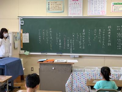 校長先生からは「2学期は少しずつ学校行事も行っていきます。感染症と熱中症に気をつけて元気に生活していきましょう。」というお話がありました。