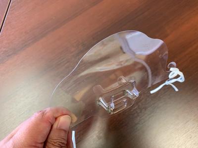 本日、クリアーマスク(マウスシールド)を1人3枚ずつ配付しました。説明書に沿って、児童の顔にフィットするように調整をお願いします。