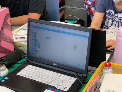 伝達を受け、先生方も苦戦しながらも正多角形をかくプログラム作りに挑戦し、思い通りに作図できたときは「やったあ!」と声を上げて喜んでいました。子どもたちにも上手に教えられると思います!