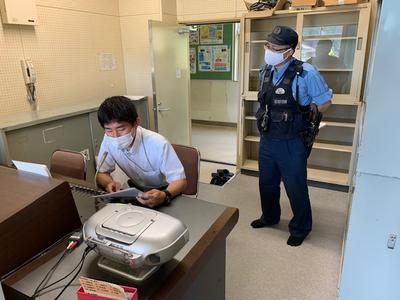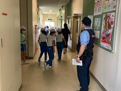 その後、警察の方から「不審者に遭った場合の対応の仕方」について、さらに駐在さんから今日の訓練を見ての感想等について全校放送にてご講話をいただき、終了しました。
