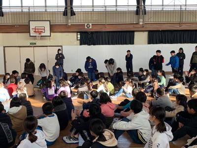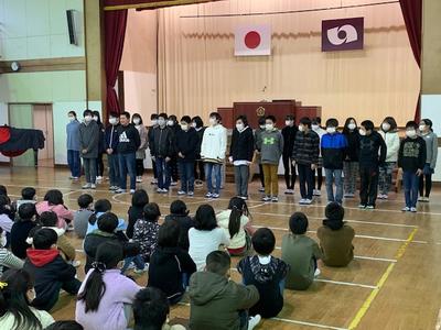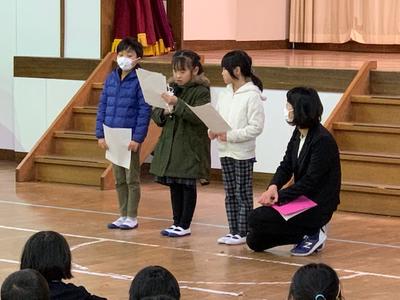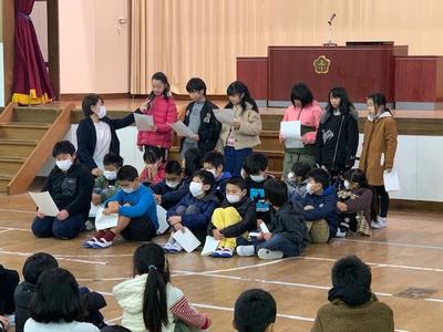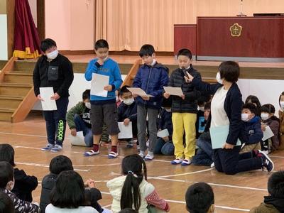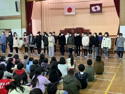 その後、2年・4年・6年の児童たちから「冬休みの思い出」や「3学期のめあて」の発表がありました。特に6年生は全校生の前で「こんな6年生になって卒業式を迎える」という強い決意表明もしました。とても頼もしく感じました。