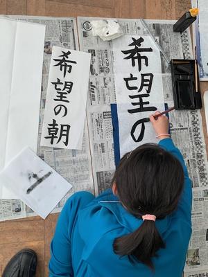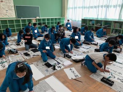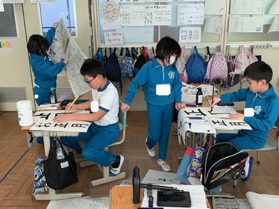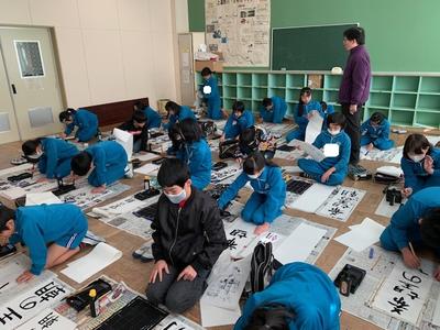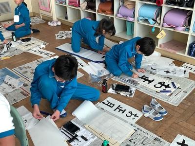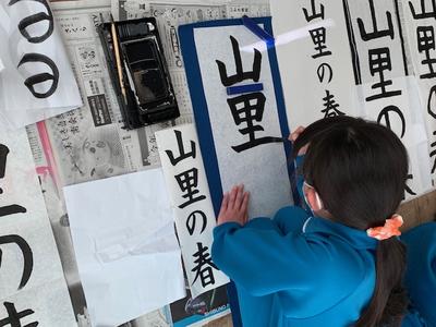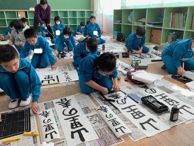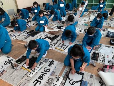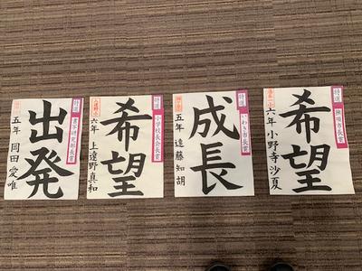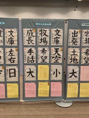 本校の代表児童も放課後などに練習を重ね、丁寧に作品を仕上げました。各校の12点は、それぞれ条幅単位(小学校単位)で審査され、特選1点、金賞3点、銀賞8点が決められます。