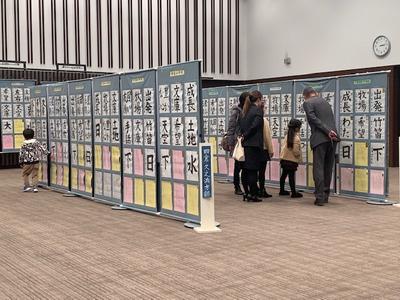 12日(日)、13日(月)、いわき市産業創造館(ラトブ6階)にて「いわき市小学校児童書写作品展」が行われました。市内の各小学校が各学年2点ずつ合計12点(1・2年生は硬筆、3年以上は毛筆)の作品を1つの条幅に入れ、展示します。