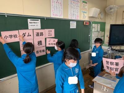 まずDVDで「税金のない世界」(アニメ)を視聴し、「学校」「市役所」「銀行」「コンビニ」「図書館」など16の施設について「税金が使われているか、そうでないか」ということを考えました。児童たちは、税金をが使われている施設を見つけながら「税金の大切さ」について理解することができていました。