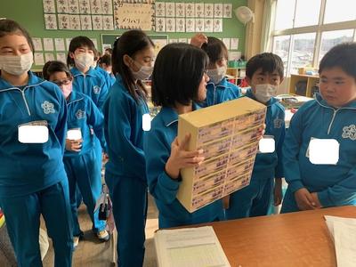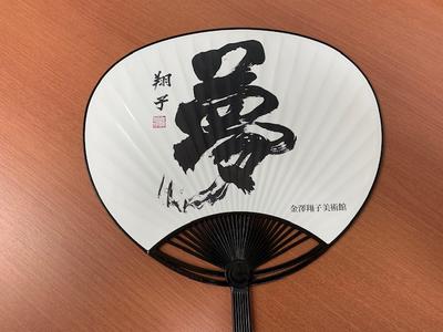 おみやげに、金澤翔子さんの書いた文字(作品)がプリントしてある団扇をいただき、児童たちは大喜びでした。