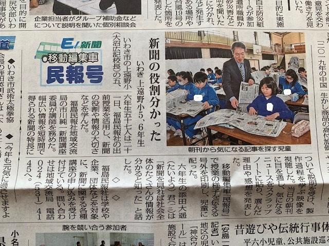 昨日の「新聞に関する出前教室」の記事が本日の福島民報:いわき・相双版のページに掲載されました!