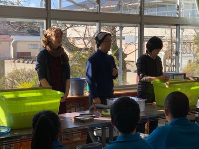 説明していただいた平山さんご夫妻、お手伝いいただいたシルビアさん、ありがとうございました。また、来月は実際の紙漉き(かみすき)でお世話になります!