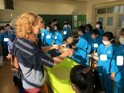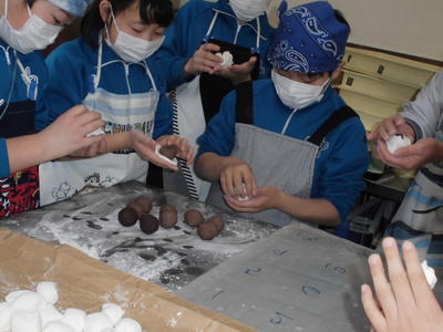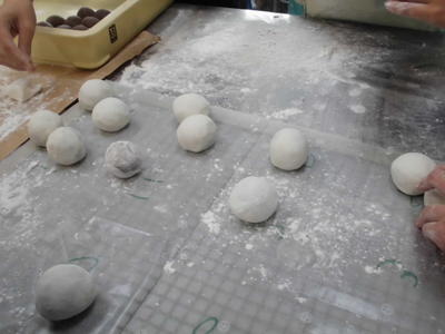 形ができたら蒸し器で蒸してもらって完成です!一人二つずつおみやげとしていただき、一つはあたかかさが残っているうちに学校で食べました。ホカホカでとてもおいしかったです!