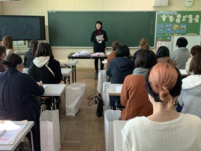 学用品の販売(受け取り)のあと、入学までの準備について、保健・健康面から、学校事務の手続きなどについての説明がありました。