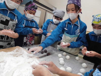 続けて5年生の記事です。「遠野町をPRしよう」の学習で、今日はお菓子屋さんに行き「まんじゅうづくり」を体験してきました。