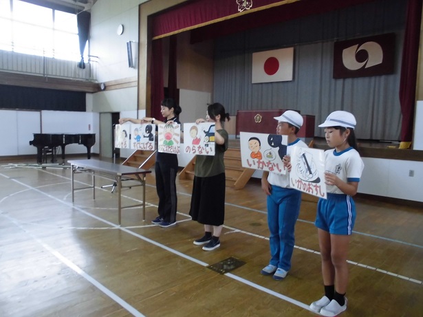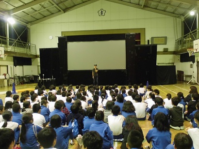9月21日3,4校時に鑑賞教室が行われ児童は「影絵」を鑑賞。影絵では、絵本でもおなじみな「あらしのよるに」と「てぶくろを買いに」を表現し、子供たちは楽しく、真剣に見るこどができました。