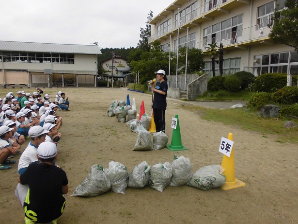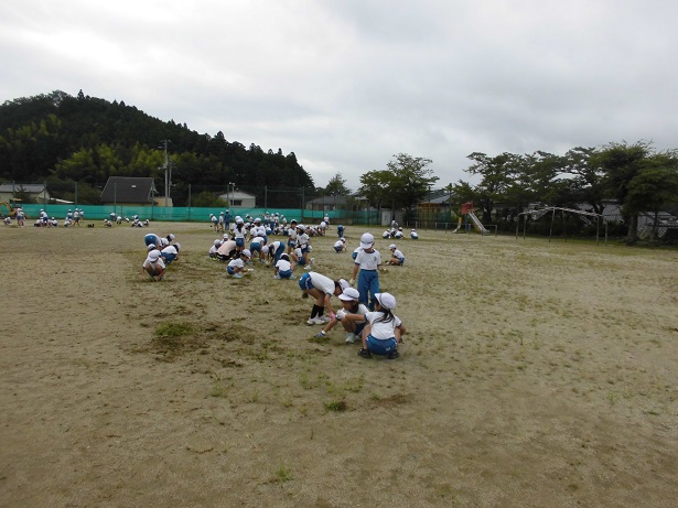 1校時に全校生で除草活動が行われました。こどもたちの様子です。
