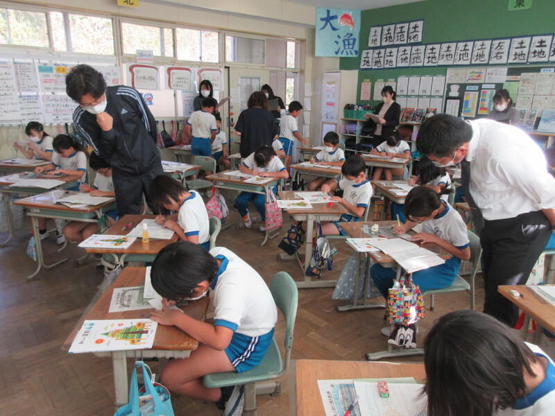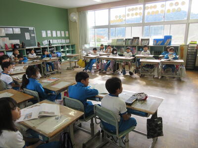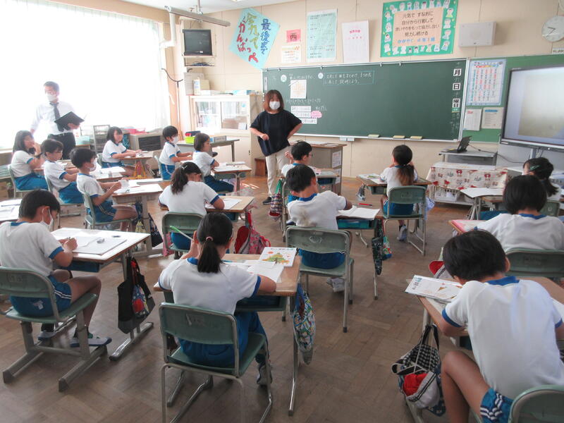 令和5年11月2日(木)、「ふくしま教育週間」に合わせた授業公開の2日目です。1年生は、算数の授業、2つの容器に入った水の量、どちらがどれだけ多いか比べます。2年生は、体育の授業、昨日行ったボールゲーム、今日は広い校庭を使いました。子どもたちはいつも以上にやる気を出し、親子でとても楽しい時間を過ごすことができたようでした。3年生は、道徳の授業、アメリカ大統領リンカーンのお話です。みんなで意見を出し合い、考えが深まります。4年生は、理科の授業、水は温められたり、冷やされたりすると、体積はどうなるか?実験するとはっきり分かり、記憶に残りました。