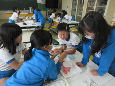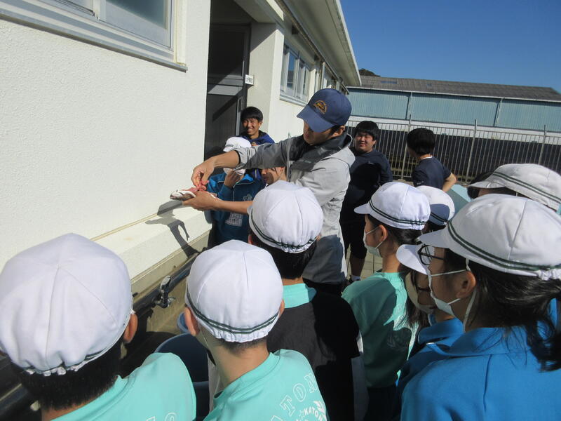 令和5年11月8日(水)、6年生が小名浜海星高校を訪問してきました。これは、本校が県教育委員会から専門高校生による小中学生体験事業の対象校として指定を受けているからです。今回、商業科と水産科の2つのグループに分かれて、体験しました。水産科での様子を紹介します。