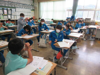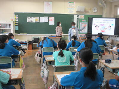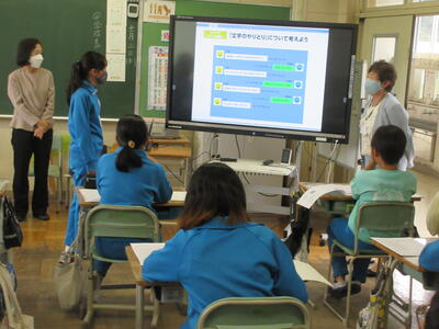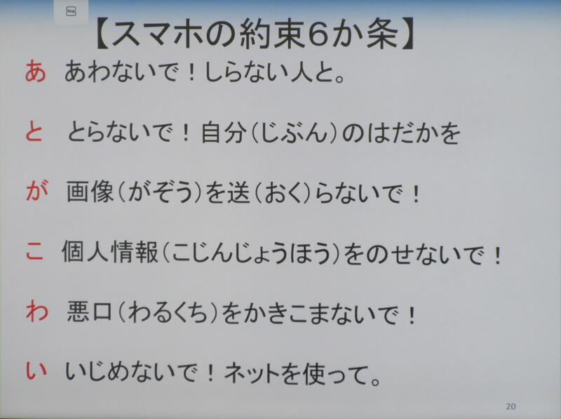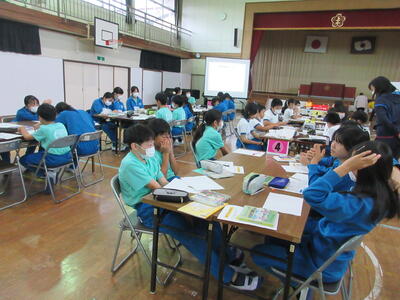 特に、「危ない」さがしクイズで、ネットにアップした写真から起こるトラブルについて、「名札や制服から、個人や学校が分かる。」など、積極的に意見を出し合って、考えました。ネットへの書き込みは、全世界に公開すること。簡単には消せないことが分かりました。改めて、ご家庭でも、ゲームやネットを利用する際の家庭のルールについてお話し合いください。