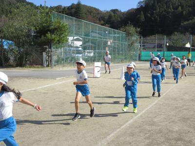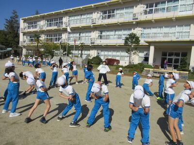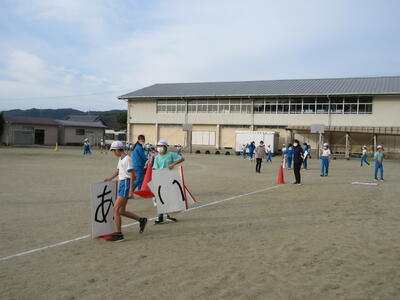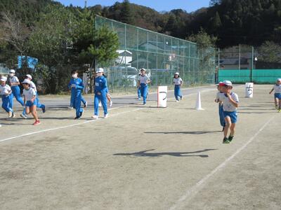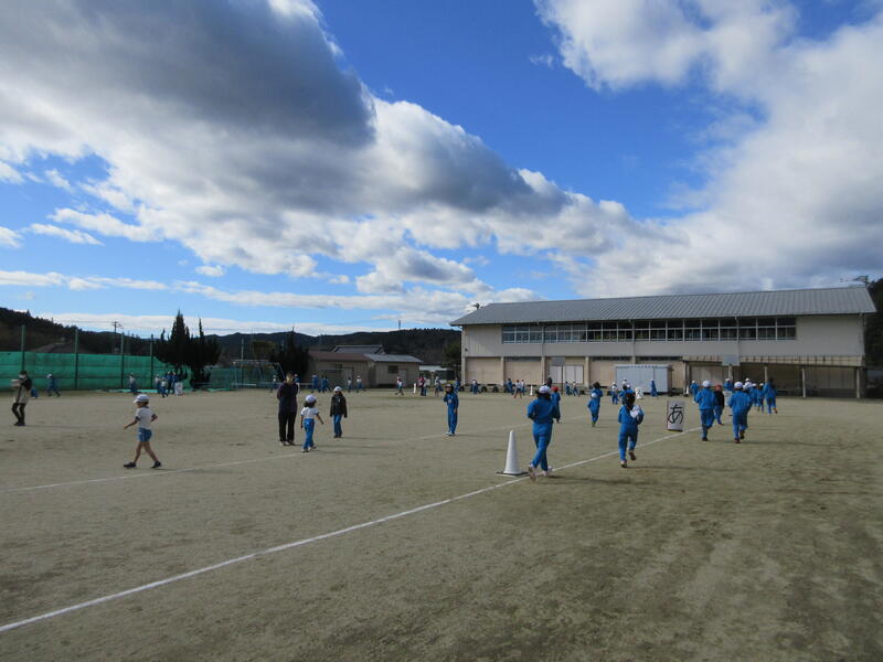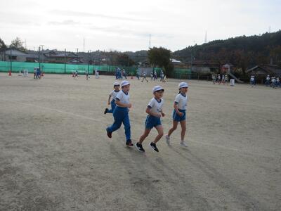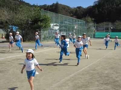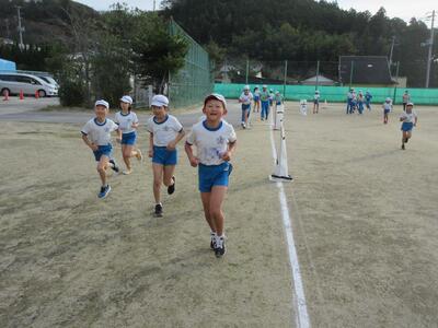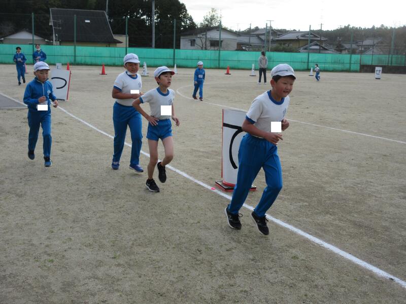 令和5年11月9日(木)、2校時と3校時の業間に、全校児童で持久走記録会に向けての練習を行いました。各学級ごとに準備運動をした後、持久走開始です。低学年は3分、中学年は5分、高学年は7分、一定のリズムで走ることを大切にしています。中学年、高学年は、本番より、1分間長くしています。子どもたちは、自分が何周走ったかしっかり記憶し、次に備えているようです。継続した練習で、体力を向上させることを期待します。