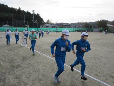 令和5年11月9日(木)、持久走記録会に向け、スポーツ健康委員会が目印のコーンを準備し、本格的な朝練になりました。担任の先生が見守ってくれます。何週目か聞くと、「5週目です。」「6週目です。」…と言う声が聞かれ、一人一人が目標を持って練習していることが分かります。継続して練習できるよう応援したいと思います。