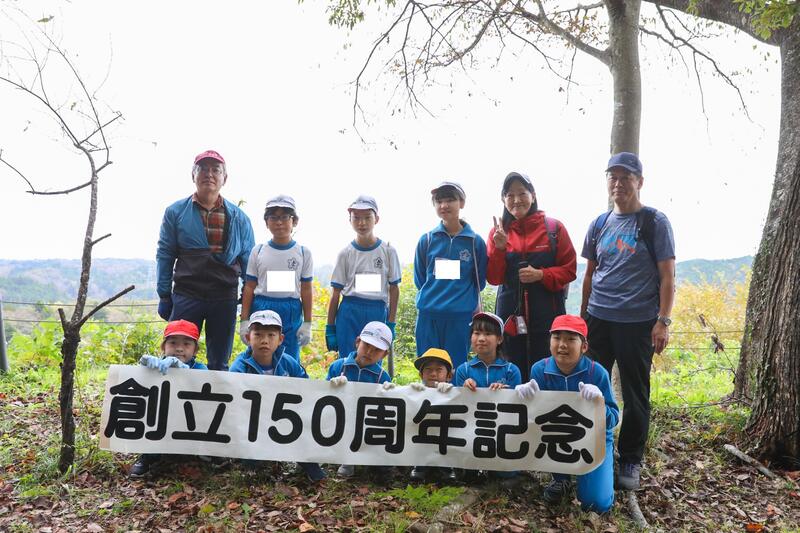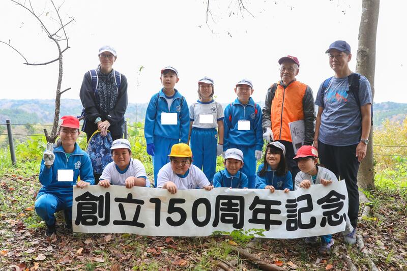 令和5年11月10日(金)、「創立150周年記念やしおみ登山(戦国時代につくられた八潮見城という山城跡への登山)」を全校児童で実施しました。地元の八潮見探検隊を中心とした8名の方にご協力いただき、安全に登山することができました。山城は、正式には上遠野城といいますが、いわき七浜と北茨城の海岸が見えることから、八潮見城と呼ばれるそうです。今日は遠野の町はもちろんのこと、小さく小名浜のマリンタワーまで見ることができました。いわき市の文化財に指定されている貴重な城跡で、遠野町の誇りに思ってよいものです。