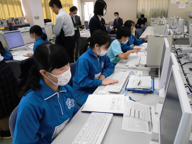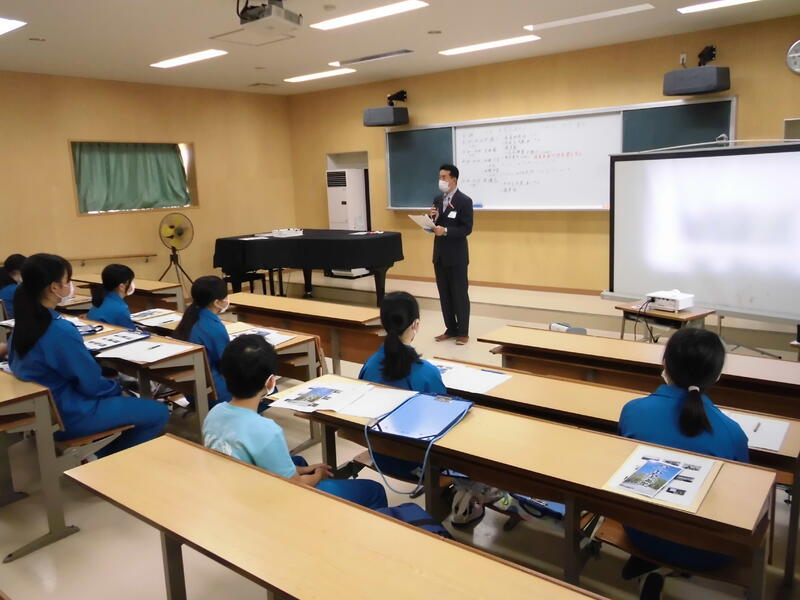 はじめに、小名浜海星高校の商業科長の先生からごあいさつをいただき、続いて、高校生から、商業科の学習内容や取得できる資格についての説明があり、校舎を見学させてもらいました。