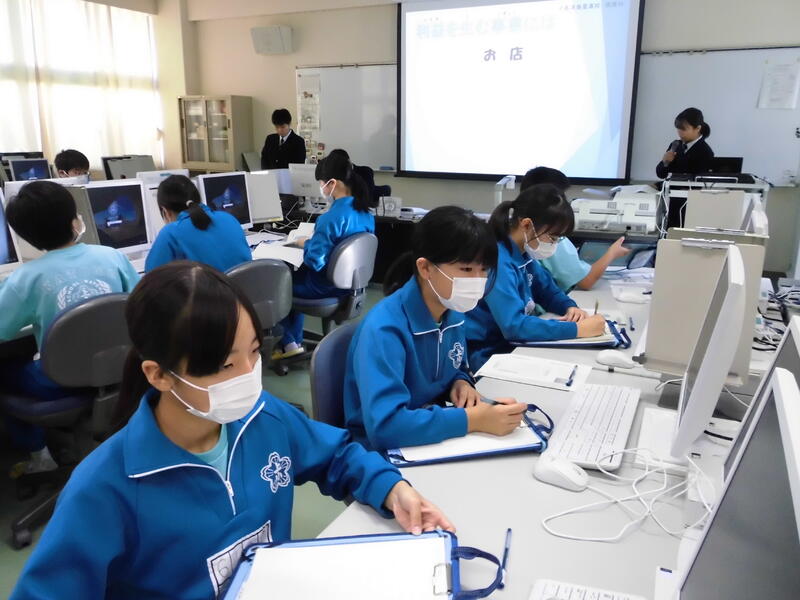 令和5年11月8日(水)、6年生が小名浜海星高校を訪問してきました。前回紹介した水産科に続いて、商業科での様子を紹介します。