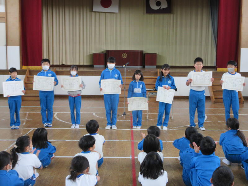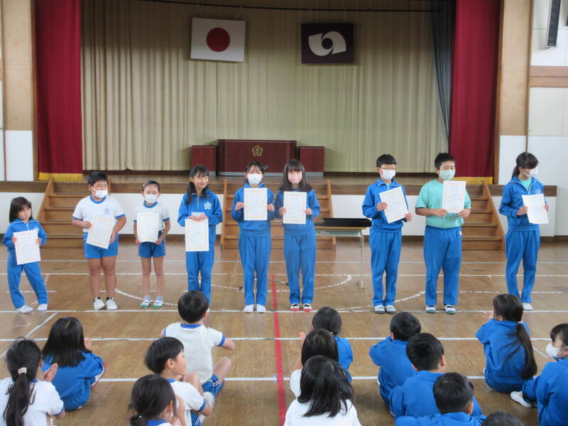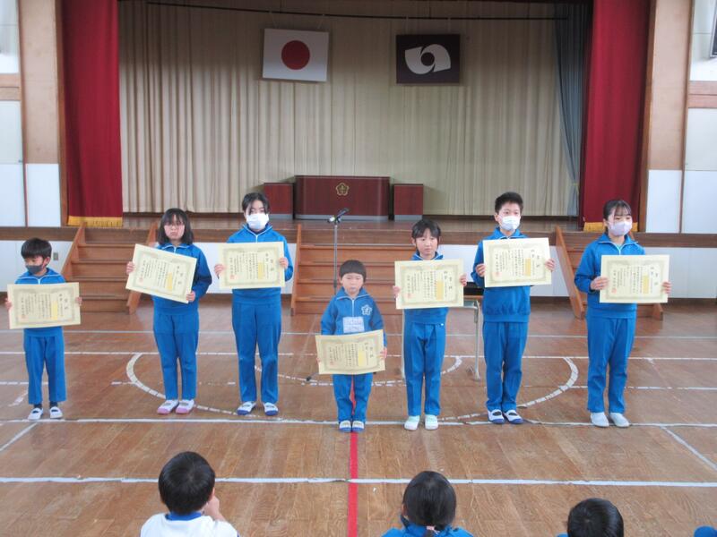 令和5年11月13日(月)、全校集会で、地区青少年健全育成標語・防犯標語・保健衛生ポスターコンクール、いわき市防災標語コンテスト、校内お弁当コンテストの表彰伝達を行いました。保健衛生ポスターは、12月1日まで遠野支所に展示してあります。健全育成標語は、入賞作品がポスターになり、学校はじめ町内のいろいろなところに掲示されますので、楽しみにしてください。