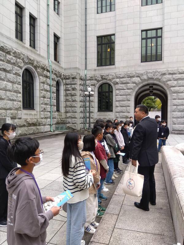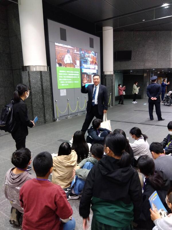議事堂前で記念写真撮影をした後、議員秘書の方に案内していただきました。御休所や衆議院議場、中央広間など、丁寧な説明で、たくさんのことが分かりました。また、今回は特別に、議長応接室、自民党控室の椅子に座らせていただきました。とても豪華で歴史を感じられる、日本の政治の中心を味わうことができました。