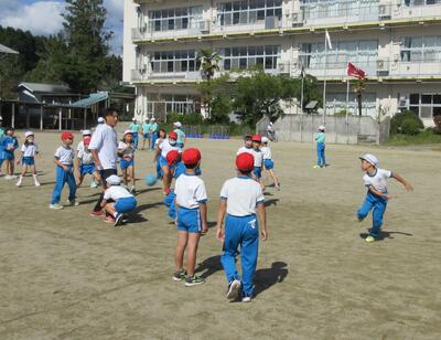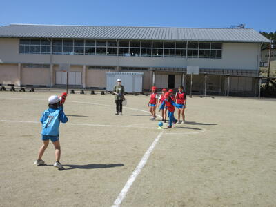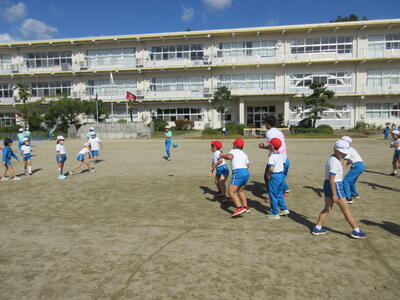 令和5年10月12日(木)、3年生は、体育科「キックベースボール」です。ルールを確認して、まずは練習試合。思いっきりボールを蹴って、遠くまで飛ばせるかな。