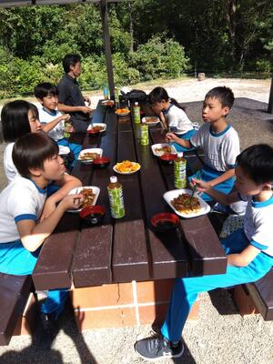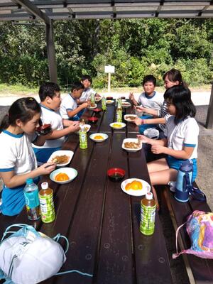 海岸ウォークラリーでたくさん歩いて、お腹もペコペコだったので、みんな完食しました。これで午後からの活動もバッチリですね。