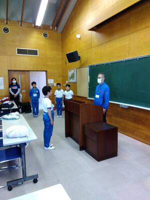 「自然との触れ合いや、友達との触れ合いで、絆が深まったこと」「キャンプファイヤーが一番心に残ったこと」「海浜自然の家のみなさんへの感謝の気持ち」を述べました。