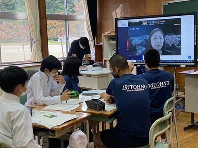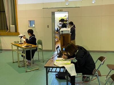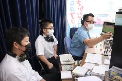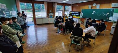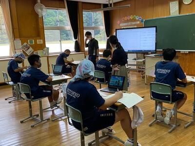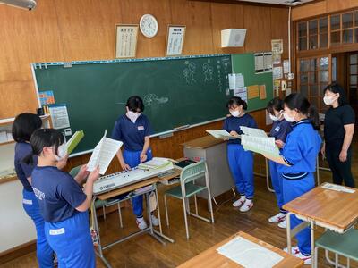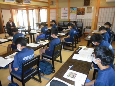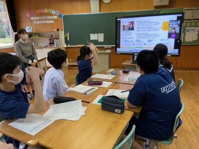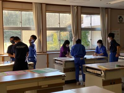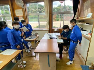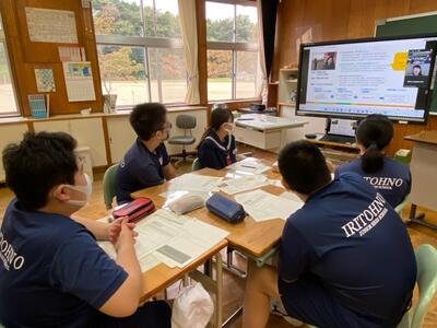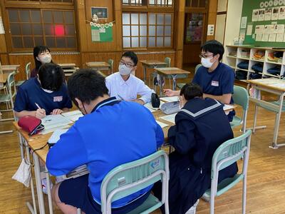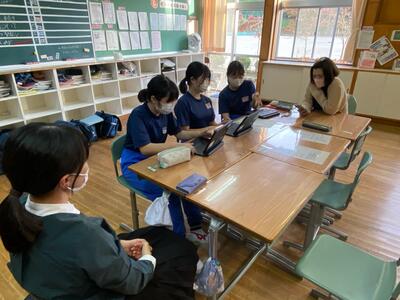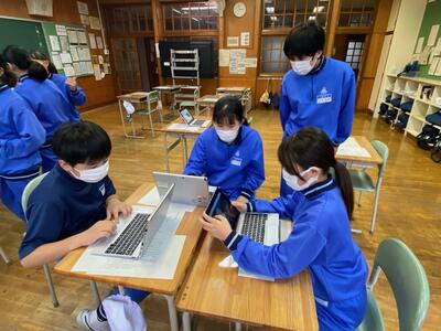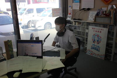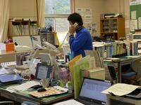 各グループの代表が、訪問先に電話をかけ、事前打ち合わせをしています。前時の練習が生かされ、ハキハキと落ち着いた対応ができていました。職員室から拍手が起きる場面も!