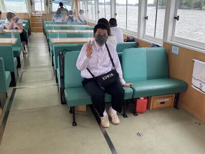 天気が心配されましたが、予定通り松島港から遊覧船に乗ることができました。中型船を貸切です。