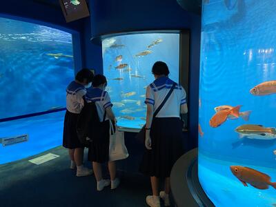 最後の目的地は、仙台うみの杜水族館です。館内を自由に見学した後は、イルカとアシカのパフォーマンスを観覧しました。観客席ギリギリのところで、水しぶきを上げてジャンプするイルカの迫力に、全員大興奮でした。