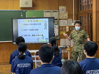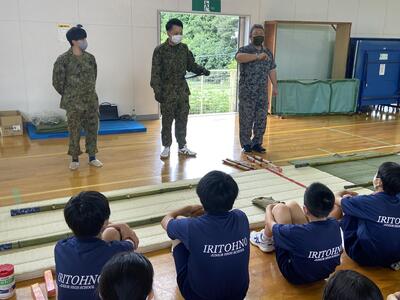 本日は、自衛隊の方々に講師としてお越しいただき、防災教室を行いました。